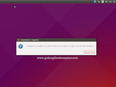 Setelah proses penginstalan selesai, maka akan ada perintah seperti pada tampilan di bawah. KlikRestart Now.
